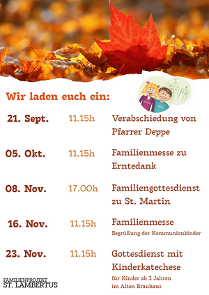 nach den Sommerferien finden wieder Familienmessen und Kinderkatechesen statt. Eine Übersicht über die Gottesdienste findet ihr hier: