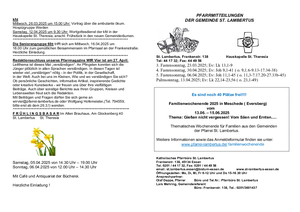 Hier finden Sie die aktuellen Gemeindemitteilungen der Gemeinde St. Lambertus in Essen-Rellinghausen: