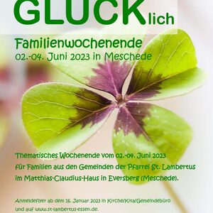Vom 02.-04. Juni haben 29 Familien mit insgesamt 99 Personen ein "GLÜCKliches" Wochenende im Matthias-Claudius-Haus in Meschede verbracht. Nach einem inhaltlichem Einstieg und eine kurze Kennenlernrunde standen am Freitag Abend Gespräche und Stockbrot am Lagerfeuer auf dem Programm.