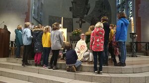 Im Anschluss wurde sie gesegnet und in einer Prozession zusammen mit den Messdienern und Kindern in die Marienkapelle getragen. Jedes Kind konnte eine Kerze entzünden, so dass am Ende die neue Ikone hell erleuchtet an ihrem neuen Platz hing.