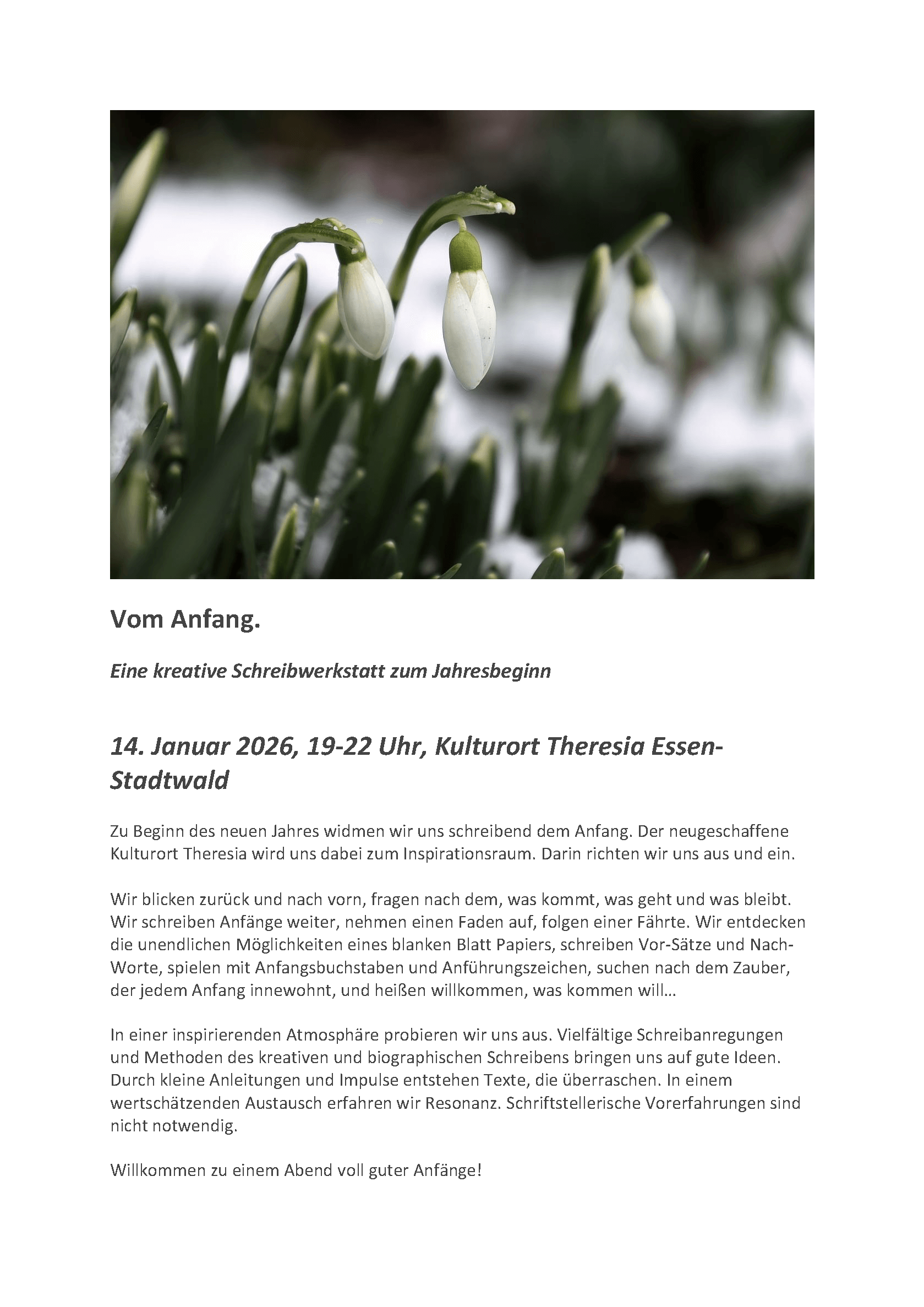 Eine kreative Schreibwerkstatt zum Jahresbeginn