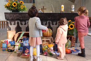 Einmal im Monat stehen die Mitglieder des Sachausschusses "Eine Welt" des Gemeinderats zur Vorabendmesse um 18 Uhr und Hl. Messe um 11.15 Uhr im Eingangsbereich der Kirche und bieten fair gehandelte Waren an. Weitere Infos zum Ausschuss finden Sie hier.