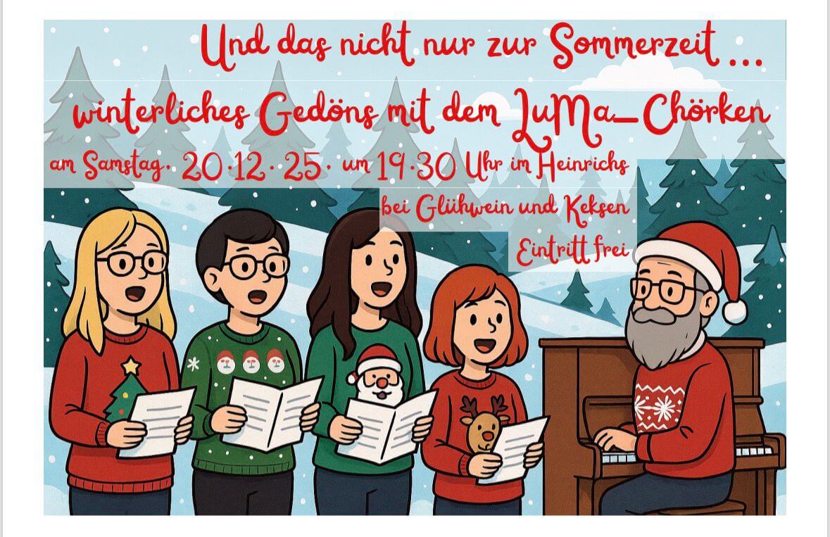 Am Samstag habt ihr noch einmal die Gelegenheit, gemeinsam mit dem LuMa-Chörken in Weihnachtsstimmung zu kommen.